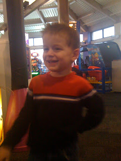 On wednesday, he had his last afternoon off for a while. We took him for a haircut and he was a total Rock Star with it. So we followed it with a trip to Chuck E. Cheese which he LOVED. Also this week, we've gone back to a more hard-core approach for potty training since we are struggling with #2. I'm happy to say that he hasn't had an accident since Monday. All in all, a very busy but very great week for us!! Tomorrow morning, I go to a meeting about funding. I'm not excited to hear what that's all about. Please, please, please don't let anything happen to our funding. This boy NEEDS it and is thriving from it!